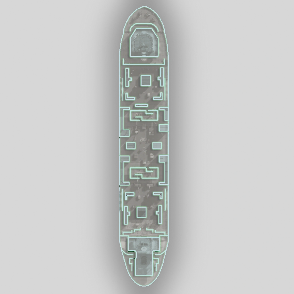 Mapa ta jest dość symetryczna. Obie drużyny odradzają się albo na dziobie statku, albo na rufie. Na obszarze między mostkami zwykle dochodzi do starć na bliskim dystansie. Z racji tego, że mapa jest dość ciemna, przydają się tutaj gogle noktowizyjne.