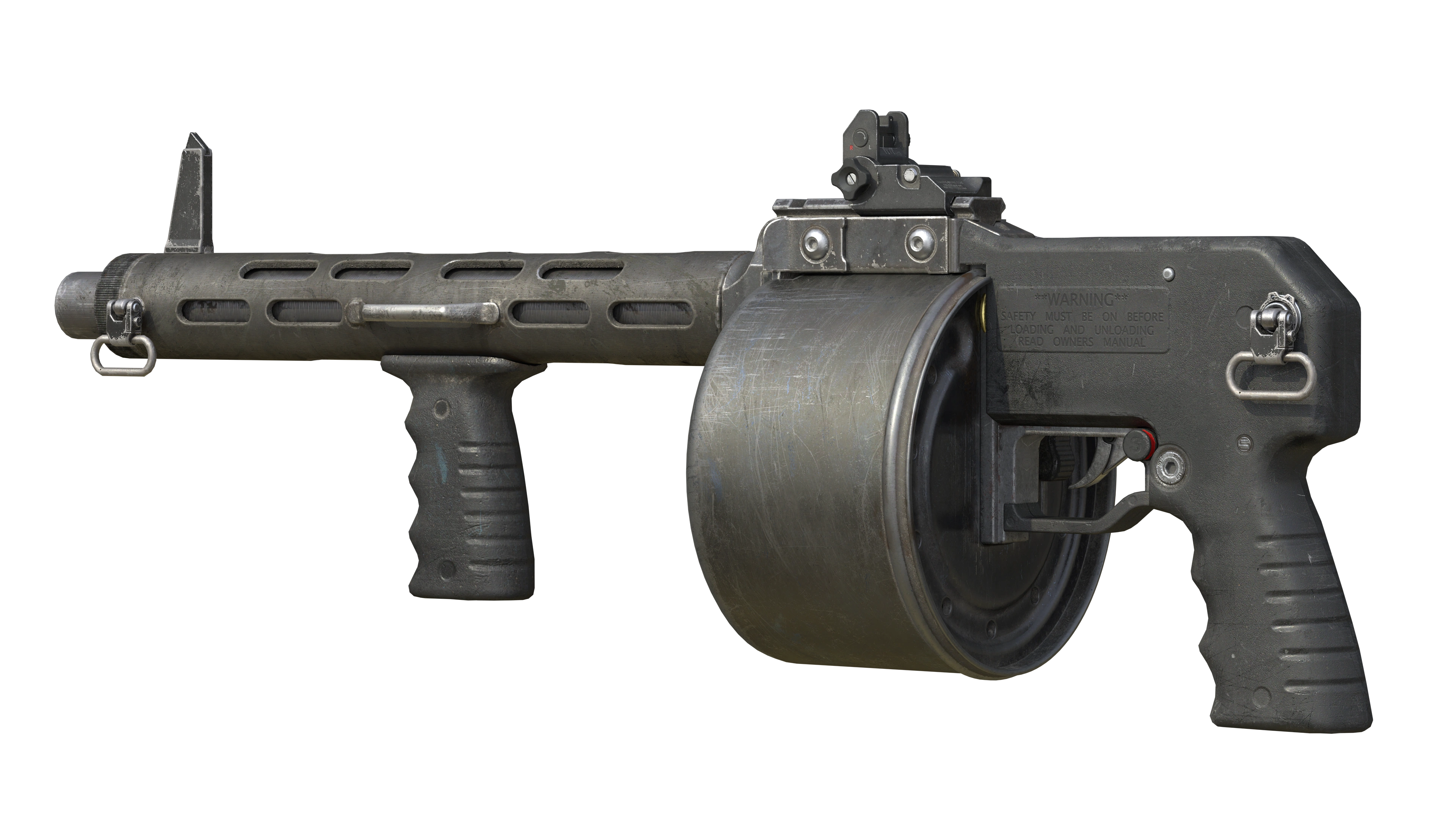 Самое главное достоинство этого дробовика — 12-патронный магазин-барабан. Из недостатков — сильная отдача, поэтому рекомендуется использовать рукоятку. Что бы ни говорили, всё равно Глушитель сильно урезает дальность этого дробовика, хотя урезает он её меньше, чем у других дробовиков. Прицелы вроде коллиматорного на дальность оружия не влияют.