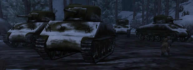 Бастонь, Бельгия, уровень "Бастонь 1" — эпизодическое появление в конце миссии. Несколько "Шерманов" прибывают к базе, которую американские войска удерживали в течение продолжительного времени, и обращают оставшиеся силы врага в бегство.