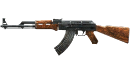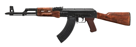The AK-47 is unlocked at Level 68. It has high damage, with a range of 31 meters, the AK-47 will deal 49 damage. The AK-47 has a moderately rate of fire, firing at 697 RPM. The AK-47 has a magazine capacity of thirty rounds. The AK-47 provides a starting ammo loadout of ninety rounds.