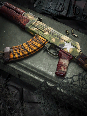 - If putting the camouflage on the AK47, the details are little small, but when turning away from the sun the side of the receiver will show silver which is almost finished and the magazine will have all silver shining finished with some little black details behind.