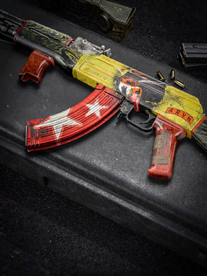 Unobtainable AK-47s are present on a table in the multiplayer training course, and gold ones are seen in the map Vault.