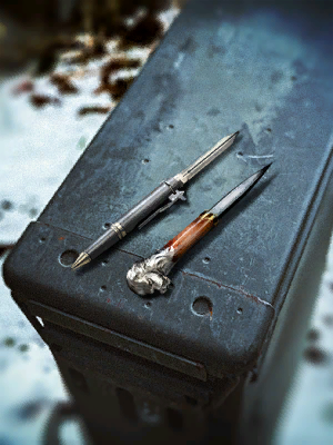- "The pen is mightier than the sword! This appears to be a combination of the two..."
