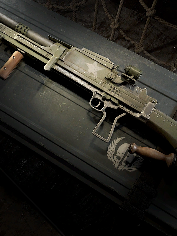 - "Full-auto LMG that delivers high damage at a slow fire rate."