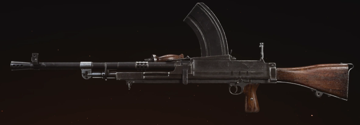 The Bren gun is issued to the British team. It will kill with one shot to the head, but otherwise needs three bullets to kill. Its magazine can create a large blind-spot to the right side of the player's vision, and its reload is fairly long. It cannot top submachine gun users or long-range snipers, but anything in between is free game.