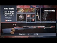 The C.O.D.E. Timeless Pack is a downloadable content package available for Call of Duty: Vanguard and Call of Duty: Warzone, that released on November 5th, 2021. All proceeds towards the purchase of this pack go towards the Call of Duty Endowment charity. The Pack features the "Blast from the Past" 1911 blueprint, the "Timeless Destroyer" M1 Garand blueprint, the "Passed Down" watch, the "Get Cracking" reticle, the "Snap 'N Go" weapon charm, the "Stick To Your Guns" weapon sticker, the "Badge of Honor" emblem, the "On the Frontlines" calling card, and the "Trademark" spray.