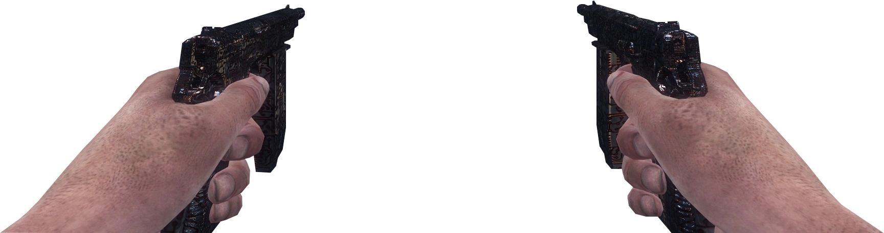 give allconsole command during the level "Numbers" will give the player a unique dual CZ75. The left gun is not visible (but still able to fire), and the right one appears to be held by an invisible hand, similar to the Dirty Harry.