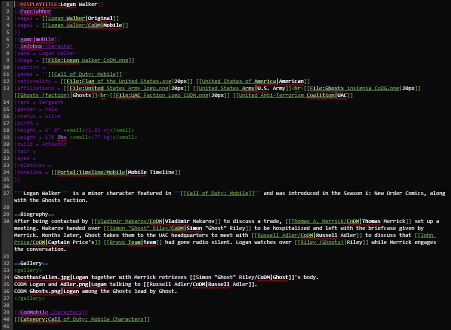 - Call of Duty Wiki:Manual of Style/Sample - a sample wiki article.