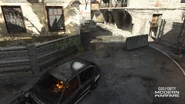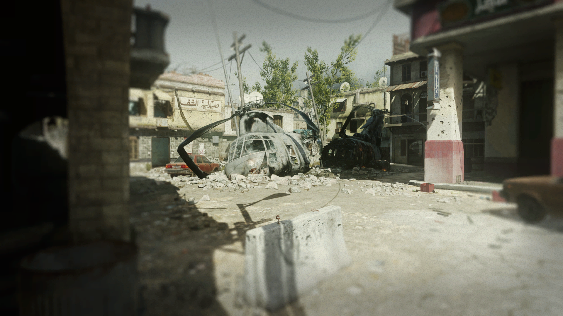In Call of Duty: Modern Warfare 2 the destroyed cars have been replaced with functional ones that can be destroyed. Players can crawl underneath the white pickup trucks before and after they have been destroyed.
