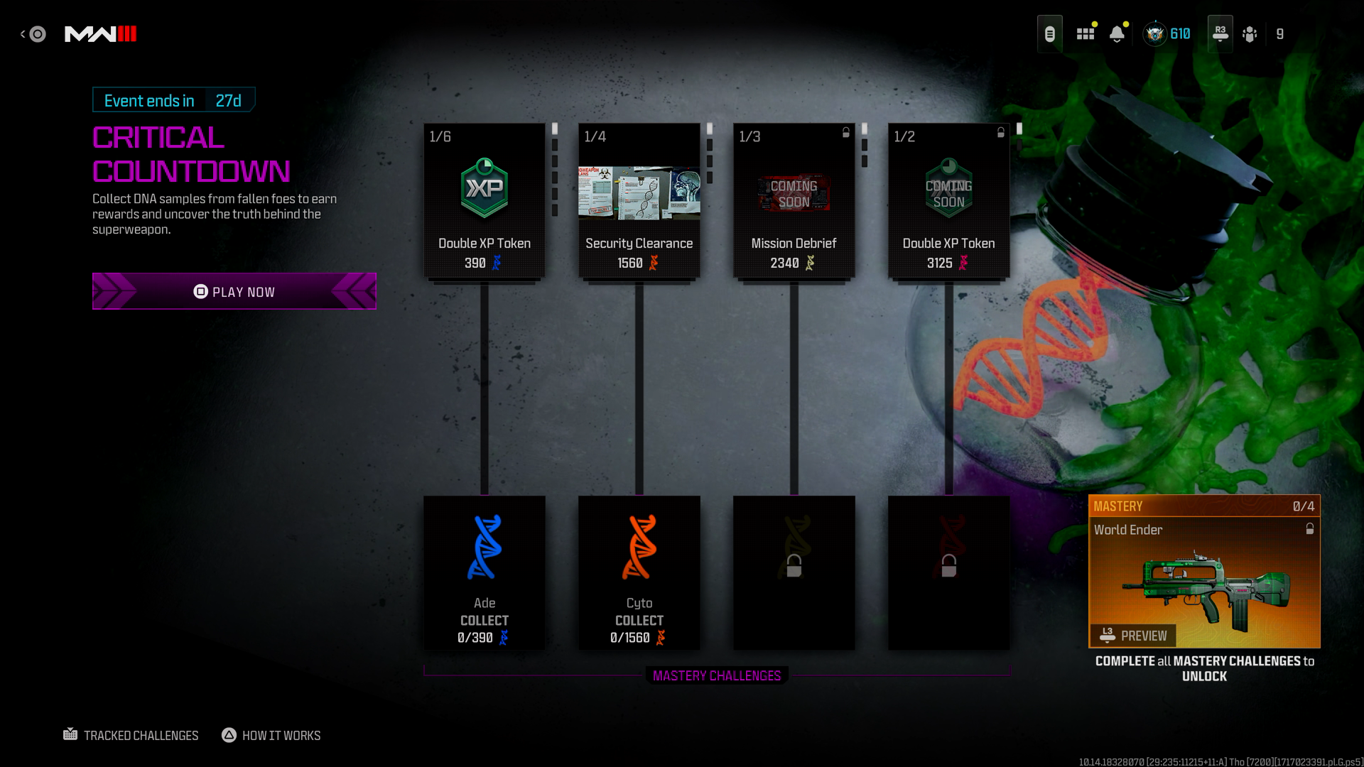 Critical Countdown was an event featured in Call of Duty: Modern Warfare III and Call of Duty: Warzone 2.0 available between May 29th and June 26th, 2024 during Season Four of Modern Warfare III.