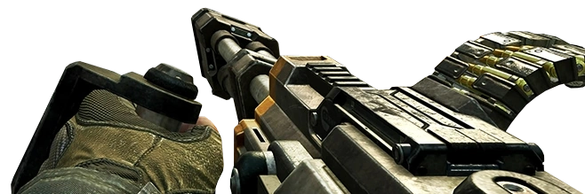 It resembles the version from Call of Duty: Black Ops II. It does very high damage to XS1 Goliath scorestreak, killing them in only a few shots. However, this version has a smaller belt size of 120 rounds. Previously, it also had a much slower fire rate, around 700 RPM; however since Season 13, its rate of fire increases gradually during firing.