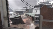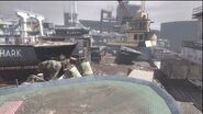 The large, black cargo ship outside the map is called the "Infinity Raven", an amalgamation of Infinity Ward and Raven Software, co-developers of the multiplayer maps in Call of Duty: Modern Warfare 3.