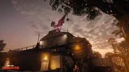 El Asilo is a medium-sized map set at a clubhouse and its surrounding area in Las Almas. Surrounding the clubhouse are various cliffsides and smaller buildings that provide sightlines around the sides of the clubhouse, favoring medium and long-range playstyles. The clubhouse itself features numerous hallways and chokepoints for close-quarters engagements, including a second floor on both the east and west wings of the building that provide a vantage point over the central hallway.