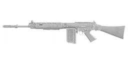 - On the right side of the gun, it says "FN FAL" and indiscernible text but backwards. This backwards lettering is also present in the letters R and S on the fire selector.