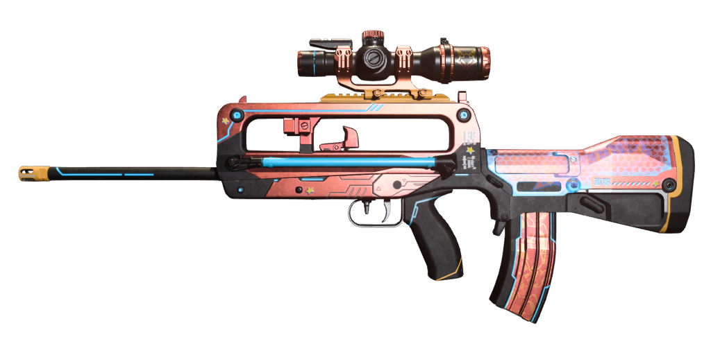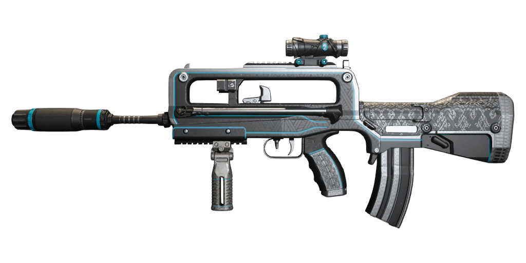 The FAMAS allows users to move at 95% of the base movmenet speed, and strafe at 38% of the base movement speed. The FAMAS aims down the sight in 250 milliseconds, and the FAMAS has average hip-fire spread. The FAMAS' reload animation is 2.76 seconds long, or 3.3 seconds long on an empty magazine. The user can Reload Cancel the FAMAS after 2.06 seconds.