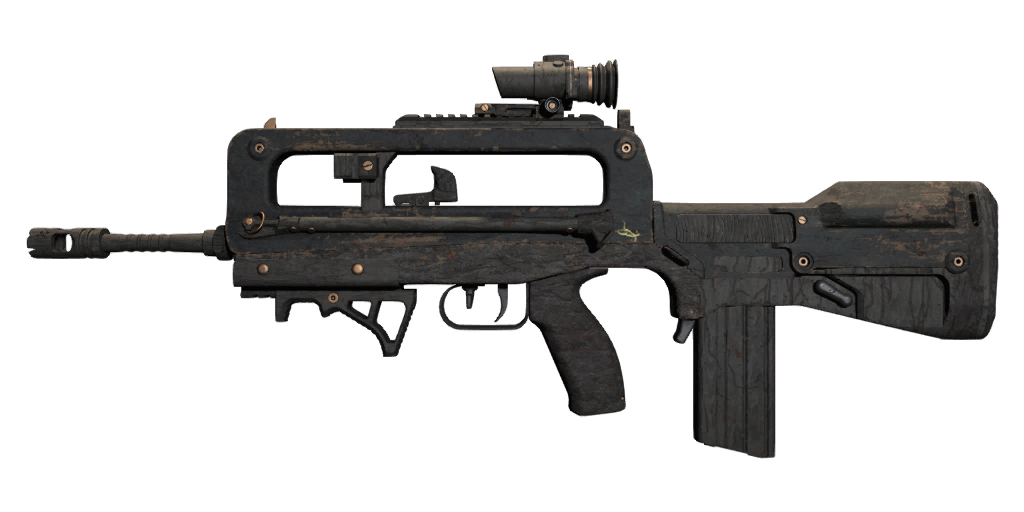 - "A 3 round burst bullpup assault rifle. A well placed burst can be extremely deadly at intermittent ranges."