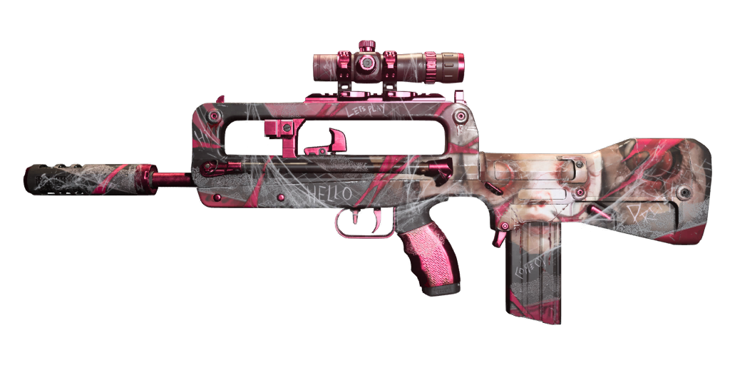 - On the left side of the gun "86-2" is engraved. This writing is most easily seen in "Redemption" when Mason holds the Famas diagonally or if an underbarrel attachment is equipped.