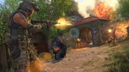 Heist is a round based mode similar to Search and Destroy but with vastly different mechanics. There are 5 players in both teams spawning on their beginning spawn areas and can access the Buy Menu - a system where players can purchase weapons, scorestreaks, armor, equipment and upgrades to enhance their combat. Cash is located somewhere in the map but it's icon can be seen on the players radar. After grabbing the case, the Extraction Site will be located(it's icon will show as well on the mini-map). Extraction Site is indicated by the red flare smoke capture area and must be secured. Victory is obtained by eliminating the entire enemy team or successfully extracting the case to site. If a player carries the cash and the enemy team is completely wiped, the cash must be brough to extraction to end the round.