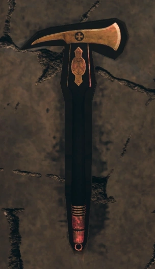 The Holda (referred to as the Nazi Axe by the Notebook) is one of the three special melee weapons featured in the Call of Duty: WWII Nazi Zombies map The Shadowed Throne. It is a golden axe with a black handle with the logo of the Ahnenerbe emblazoned on a golden plate attached to it, with the Iron Cross placed on the head. The entire axe pulsates with Geistkraft energy.