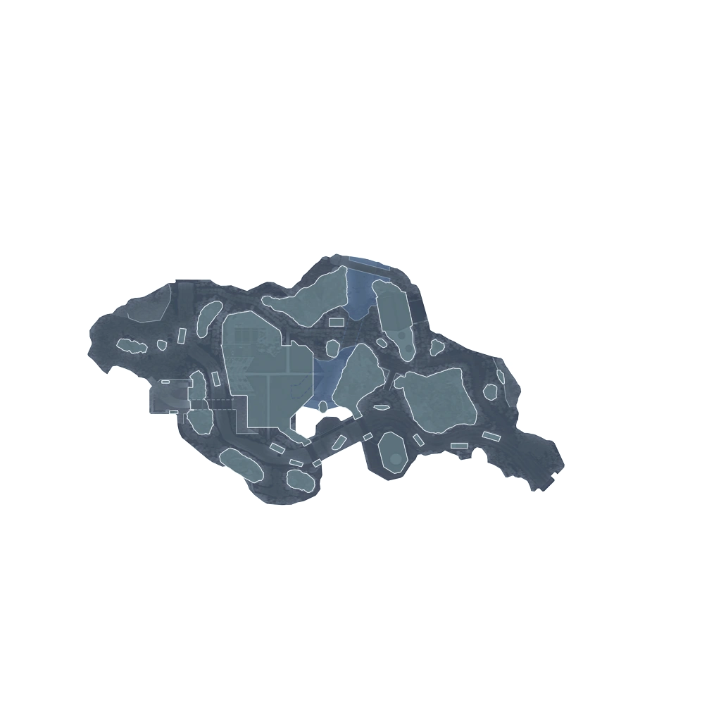 There are small paths leading to where close-quarters weapons dominate. There is a ledge usable for snipers, however it is small and really only useful for moving. There is a water pathway in the middle of the map with a downfall which, like other maps, results in instant death. In the river there is a square in the wall where a player can swim up to a building and serves as an entry way to the water also.