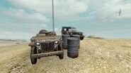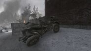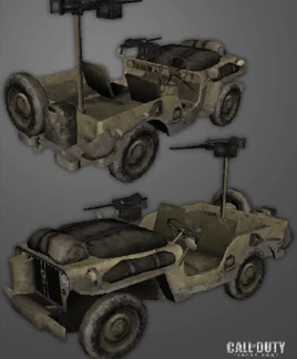 In multiplayer, the jeeps are either broken or are not functional and are only good for cover. In single player, they came both in convertible and non-convertible version, as well as a desert in Tunisia for a brief scene (in which the player crashes into a German vehicle and must continue on foot) and Normandy camouflage type. They are seen destroyed in service with the Soviets, featuring the remains of a painted red star on the front lid.
