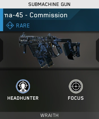 The Karma-45 (referred to as CRB in the game files) is a submachine gun featured in Call of Duty: Infinite Warfare. It has built-in dual magazines, allowing the weapon to have tactical faster reloads. The Karma-45 resembles the Vector from previous games, but appears to be double-barreled.