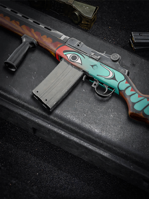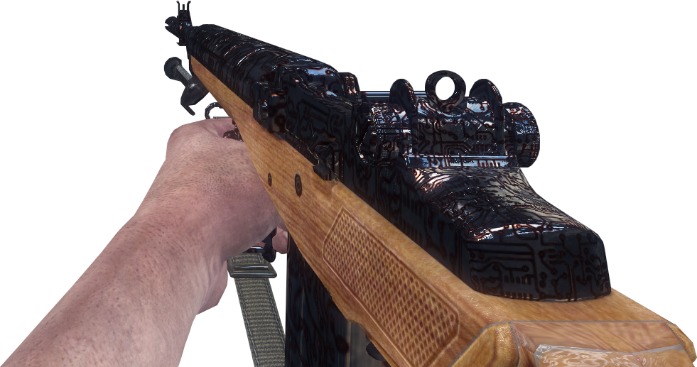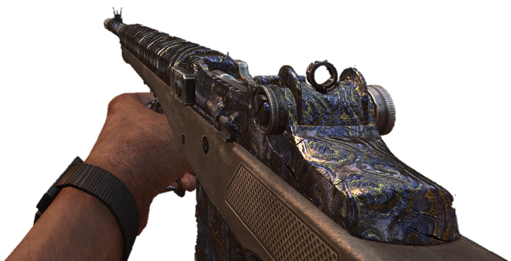 - The weapon's wooden furniture is replaced with synthetic material when camouflage is applied, and its sling changes color as well. On the Nintendo Wii version, however, only the metal iron sights and top perforations are colored.