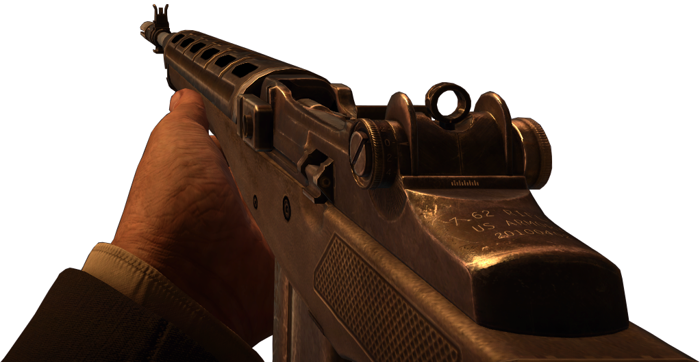 This weapon seems to trigger quotes from all of the characters, usually dealing with its weight. In comparison, the M14 is almost equivalent to the M1 Garand as their iron sights are the same, they both have eight rounds, and they are fairly decent for the early to medium rounds.