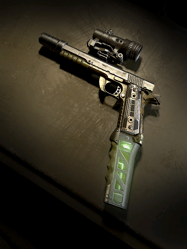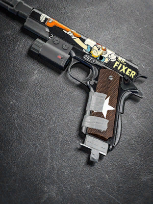 Additionally, an unusable 1911 modeled after the "Corax" blueprint from Call of Duty: Modern Warfare is seen on a table next to a lighthouse in the mission Recon by Fire.
