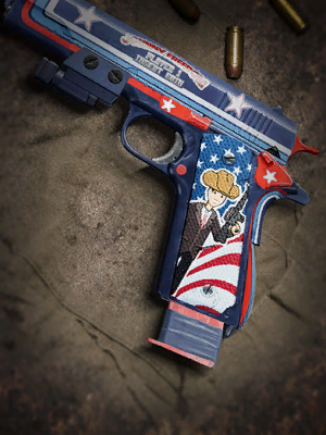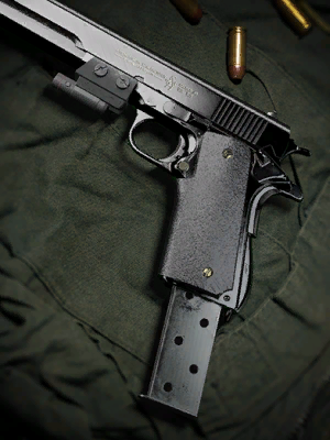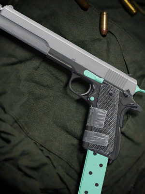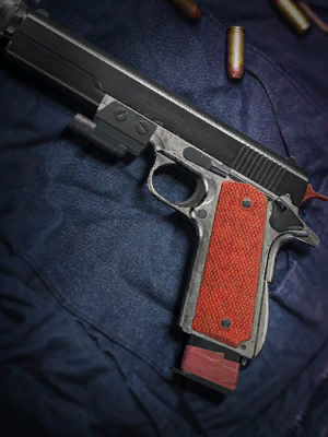 - "American semi-automatic pistol with a high capacity. Effective at close range."