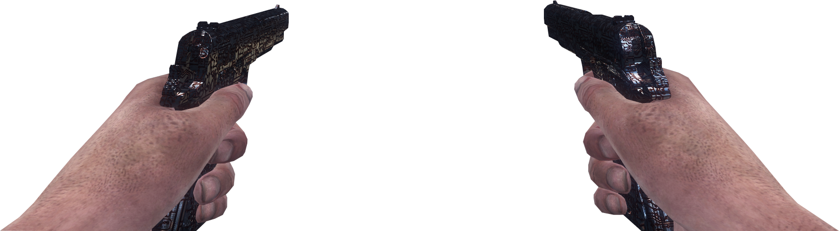 - When using the sights, the player may notice a small gap in the textures on the left side of the hammer, allowing the player to see through the weapon.