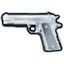 - "With a design by John Moses Browning, this pistol was the standard U.S. combat handgun for over 70 years. .45 caliber 7+1 round clip."
