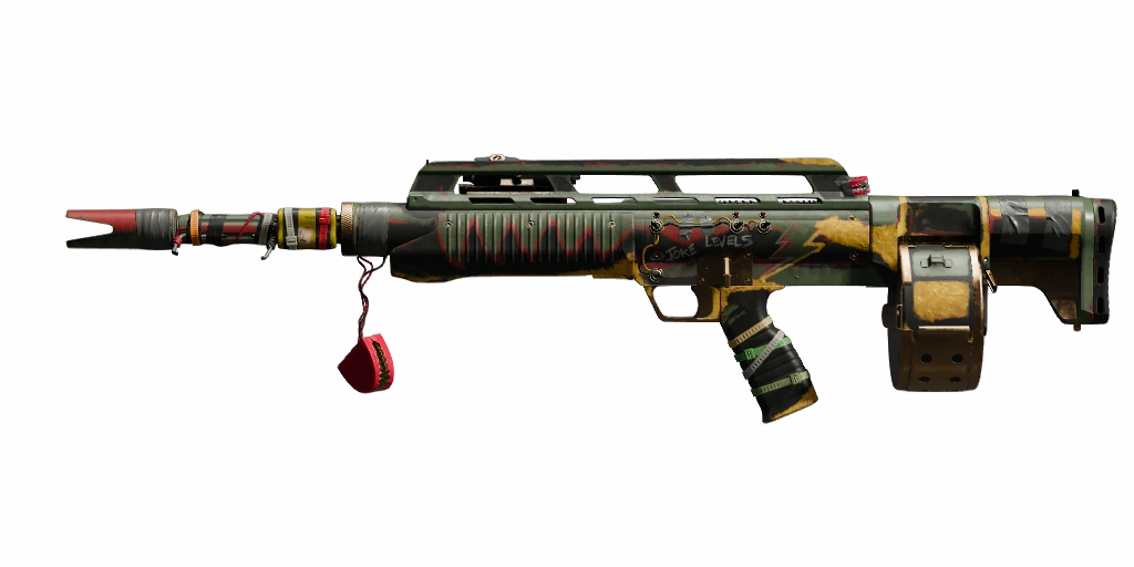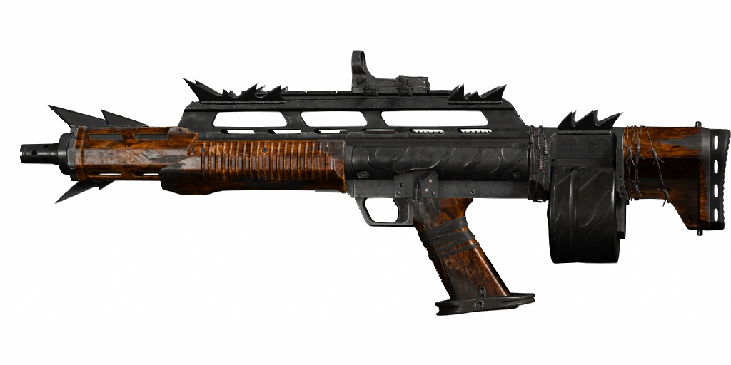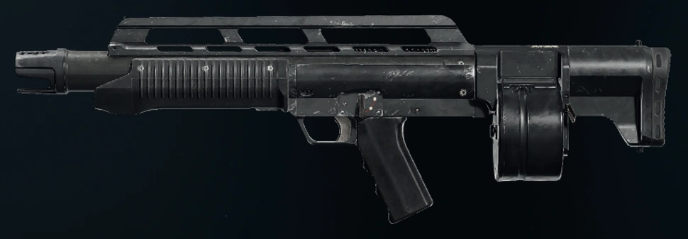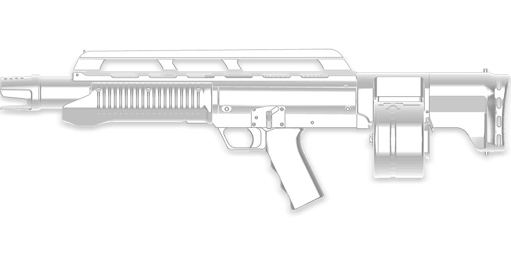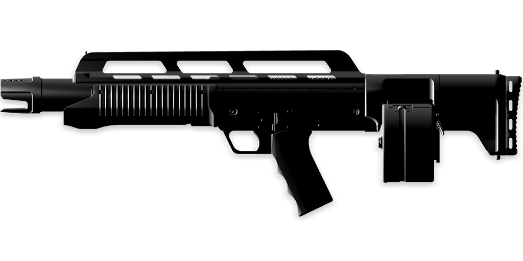- "Full-auto shotgun. Good range and handling. High recoil and large hip spread."