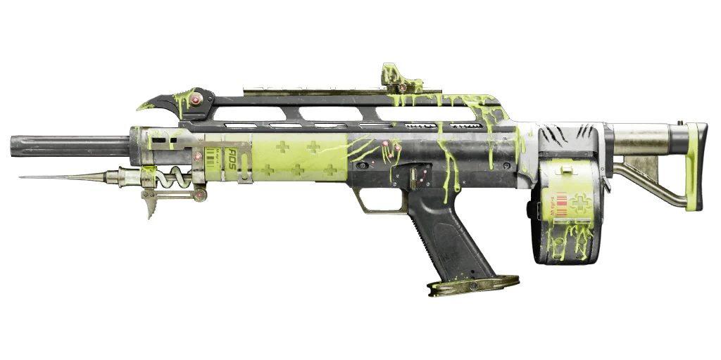 When upgraded either by the Pack-a-Punch Machine or via Aetherium Crystals, it becomes the Tenderizer. The Tenderizer gains increased damage, a doubled magazine capacity and an increased reserve capacity of 240. Uniquely, the Tenderizer gains an increased critical rate, a decrease in the reload speed and an increase to the rate of fire.