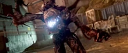 The Mimic can spawn in two ways, alongside standard Zombies from a window or by spawning in a random area of the map as a dropped item, showing its true form with a blue flash one provoked. Within this mimicry form, they are virtually identical to the object they disguise as. They will stay in this form until a forced out by either a player walking within attacking distance or the disguise being shot, to which they will break the mimicry with the same blue flash. In the Onslaught game mode, Mimics may take the form of a large loot chest and function in the same way. Whilst undisguised Mimics are able to attack in two ways, a claw swipe and a grab attack utilizing the tentacles on the Mimic's back which will reel in the grabbed player to the maw of the Mimic to inflict a bite. Mimic's maw are also their critical hit spot and they are weak to toxic based damage, such as that given by Brain Rot.