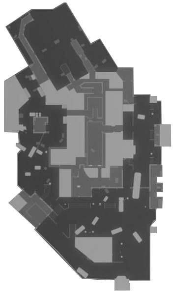 The middle of the map is the inside of the prison. There are two levels and four entrances/exits to other parts of the map. The West and East sides of the map are outdoors, the east side is a straight shot with only a few cover spots but the west side has a few small building structures that can be use as hiding spots, high jumps and vantage points. At the North end side is the prison's courtyard, catwalks and chain link fences provide the only source of coverage.