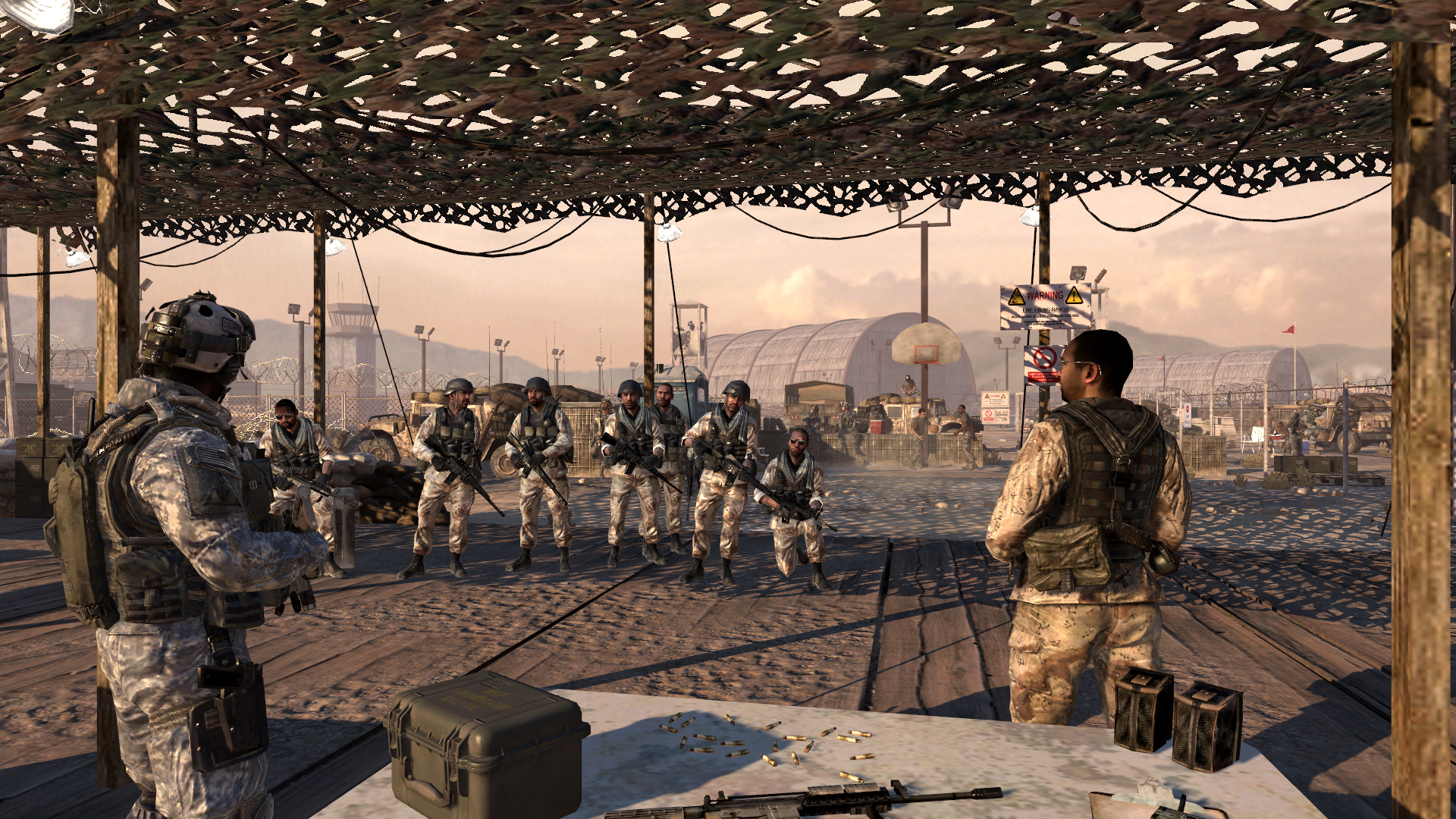 The level starts with PFC. Joseph Allen and Sgt. Foley at Firebase Phoenix training some local Afghan National Army soldiers to shoot efficiently, as Foley mentions that they have been, "firing from the hip and spraying bullets all over the damn place." Sgt. Foley tells Allen to do a quick weapons demonstration. Allen picks up an M4A1 to demonstrate what the Afghan soldiers have been doing, showing them how inaccurate firing from the hip is. Foley then instructs Allen to demonstrate how the Rangers take down a target (by crouching and aiming down the sight). Foley then goes on to instruct the Afghan soldiers (and indirectly, the player character) how their gun can penetrate light cover, how to snap between targets quickly with their iron sights, and how to throw a frag grenade.