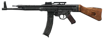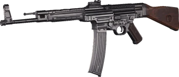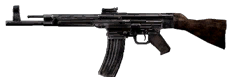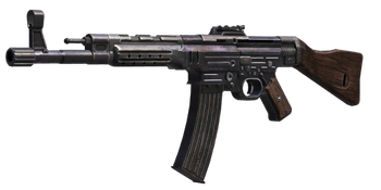 The StG-44's handling characteristics are bog standard for a rifle. The StG-44 allows users to move at 95% of the base movement speed, and 38% when strafing. The StG-44 allows users to aim in 250 milliseconds, and it has moderate hip-fire accuracy. The StG-44 has a neat advantage of having some of the fastest reload speeds of all rifles, with the reload animation being 2.45 seconds long, or 3.35 seconds long if the magazine is empty. In either case, the user can Reload Cancel after 1.55 seconds. The reload cancel speed is the fastest of all rifles, and one of the fastest in the game, faster than any bolt-action rifle, rifle, SMG, machine gun, or shotgun, and faster than two of the pistols. The StG-44 will not leave users vulnerable for long when reloading.