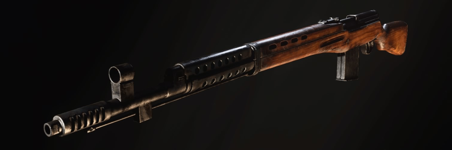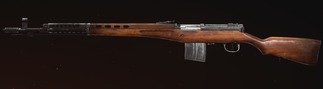 The Tokarev SVT40 is a Soviet semi-automatic rifle, which is a medium between the American M1A1 Carbine and M1 Garand. It is essentially the same as the Gewehr 43, dealing one-shot kills in close quarters or to the head, or three-shot kills to the chest. It has a fairly low rate of fire, but is pretty accurate with a decent-sized magazine and high damage, making it a very effective medium range weapon. Its ammo can become fairly scarce at some points, however.