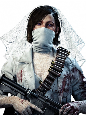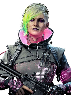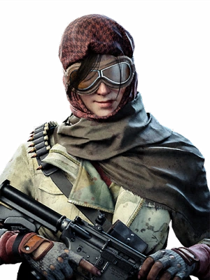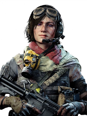 - Despite her combat outfit featuring a katana, Maxis's playable skin does not include it, possibly to prevent clipping with other weapons. The gas mask is also tilted to the left instead of the right. This issue is not present with the Warzone version of the skin.