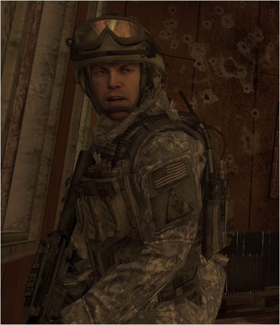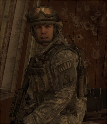 After the EMP goes off, he moves some wreckage to get Ramirez out of the helicopter. He is scripted to die while clearing the offices. A soldier sharing his name always reappears in the Presidential escape route in the next level, but he will die from being overwhelmed of shots from the White House.