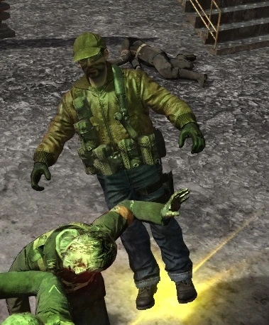 Soldier Statues have a solid character model similar to the player's character model, but the statue has his arms out, unlike the player, and some sort of face camo. Soldier Statues have a unique Yellow tint surrounding them when they appear in the map, making them easily distinguishable.