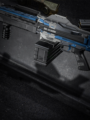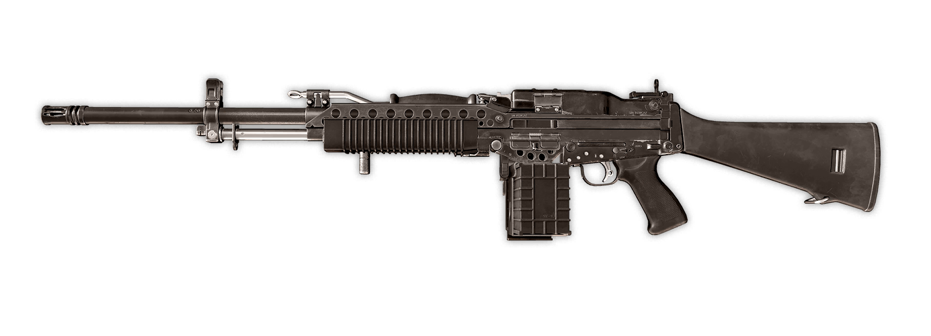 - "Full-auto light machine gun. Improved fire rate with a larger ammo capacity. Subdued recoil and good visibility while firing."