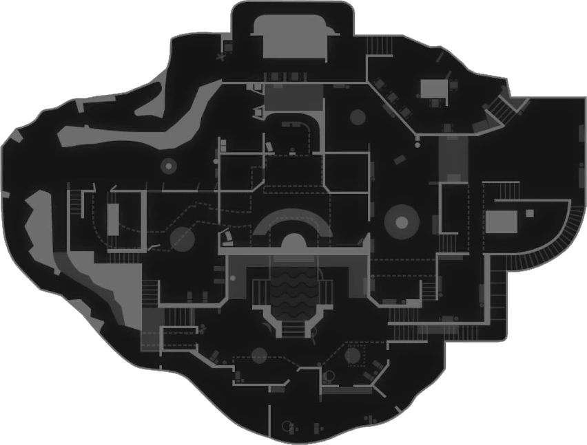 The map is built on several levels. The highest level is at the North end of the map and the lowest level is at the South end where a pool is located. The center of the map is a restaurant, there are a few pathways leading to the restaurant giving players a multitude of ways to enter or exit. The map has many long sightlines and high buildings, making it a very popular map for snipers.