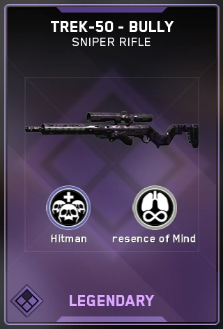 - "Single fire ballistic rifle. Powerful, high caliber bullets allow for one shot, one kill capability anywhere on the body at the cost of aim assist."