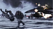Following the defeat of the Russian forces in Washington D.C., the remaining combatants centralized their focus on New York City, where they engaged in a slugging match with the United States military. The Russians successfully established various temporary airfields within the city alongside numerous SAM sites. These factors were only bolstered by a broadcast tower planted on the roof of the New York Stock Exchange building on Wall Street, which proceeded to jam the guidance systems of U.S. aircraft, as well as their radio communications within a certain distance of the tower. The Russians maintained air superiority within the city for the majority of the conflict, putting U.S. forces on the defensive, until Delta Force operators from Team Metal launched a successful operation to assault the Stock Exchange and destroy the radio jamming tower, reestablishing radio communications and aircraft guidance systems. Shortly after recovering their ability to utilize their aircraft, the U.S. initiated a series of synchronized airstrikes on the established Russian airfields and SAM sites, allowing them to regain air dominance and quickly push the remaining Russian forces back to New York Harbor, where the Russian Navy was put on the defensive. Team Metal executed a second operation in conjunction with Navy SEALs to neutralize the fleet's command vessel, an Oscar II submarine known as 'Olga.' Metal successfully planted mines on the submarine and forced it to surface, allowing their operatives to infiltrate the vessel and eliminate its crew and fleet commander. Metal fired the submarine's cruise missiles on its own fleet, devastating multiple Russian warships and resulting in the invasion force calling a full-scale retreat from the East Coast back to Russia in defeat.
