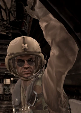 Lieutenant Volker was the crew chief on a CH-46 Sea Knight helicopter, Outlaw 2-5, seen in the Call of Duty 4: Modern Warfare mission "Shock and Awe".