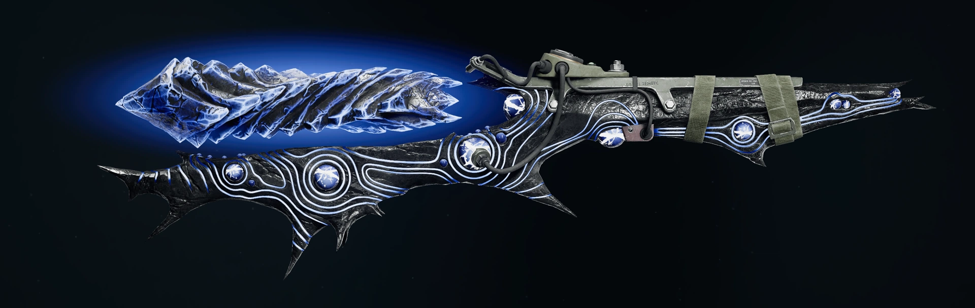 When upgraded either by the Pack-a-Punch Machine or via Aetherium Crystals, it becomes the Cosmic Harbinger. The Cosmic Harbinger gains increased damage and an increased reserve capacity of 400. With no Shard attachments or any Shard attachment, excluding the Stone Escalation Shard, the magazine capacity will be increased to 100. However, with the Stone Escalation Shard equipped, the magazine capacity is increased to 14.